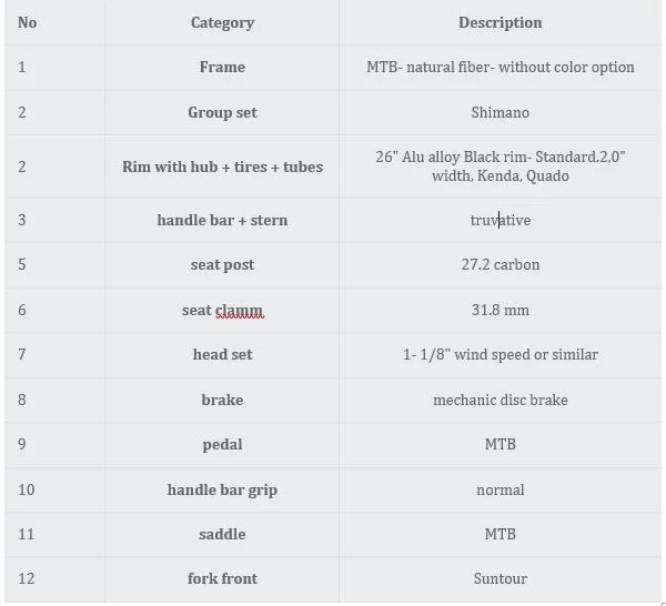Bamboo Bicycles Collection I Bamboo Mountain Bike - Mod 2 PreviousBamboo Classical Bike - Mod 1 NextRetro Bamboo Bike Bamboo Mountain Bike - Mod 2 Bamboo Mountain Bike - Mod 2 $1,113.00 Size: Select Size 15171921 15 17 19 21 Quantity: Add To Cart Facebook0 Twitter LinkedIn0 Reddit Tumblr Pinterest0 Bamboo Mountain Bike - Mod 2 View fullsize View fullsize