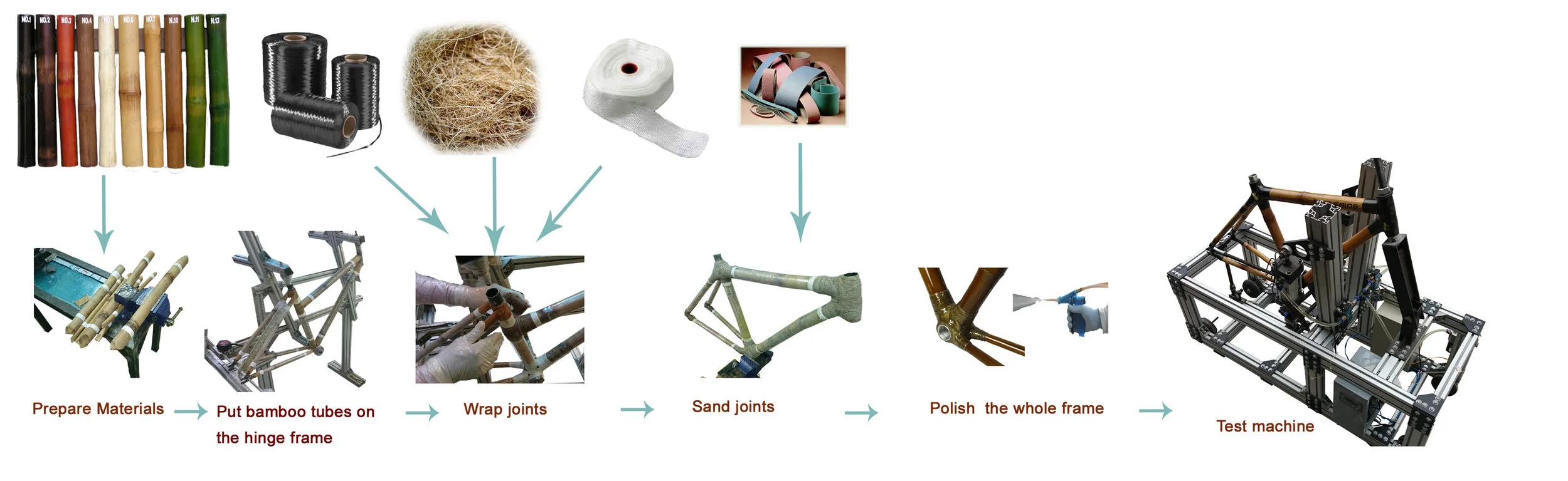 This is the process of making a Bamboo Bike. As you can see there is a lot of work that needs to be done to make a perfect product. The components that you choose to go with your Bamboo Bike would be the same as it would be a regular bike. The more expensive your components obviously the better performing Bamboo Bike you will ultimately have. We also sell Bamboo Bike Frames which you could custom build to the specs of your choice. There are even many companies that make electric motors you can purchase and use on your Bamboo Bike.