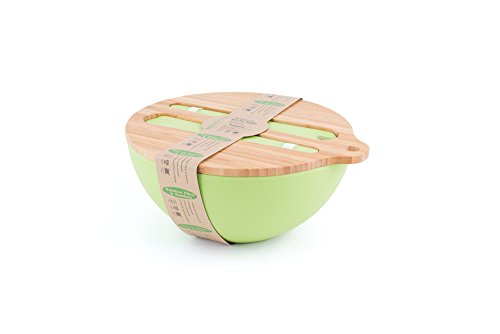 Peterson Housewares BF0240002GR4 Bamboo Fiber Bowl with Bamboo Lid and Inset Utensils, Green