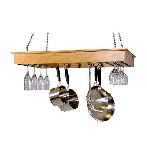 Corner Housewares SpaceMaster Ultra Modern Solid Bamboo Hanging Wine Glass and Pot Rack for Sink or Kitchen Island, Bamboo